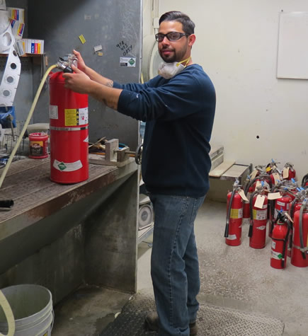 Annual Service of fire extinguishers can be done on-site at your facility or hand carried into our facility. We also offer monthly inspection service as well as annual. *Liberty is an authorized D.O.T hydrostatic testing facility for all industrial gas cylinders. *Please note that we also offer bead blasting, valving, repainting of cylinders and requalifying of propane.